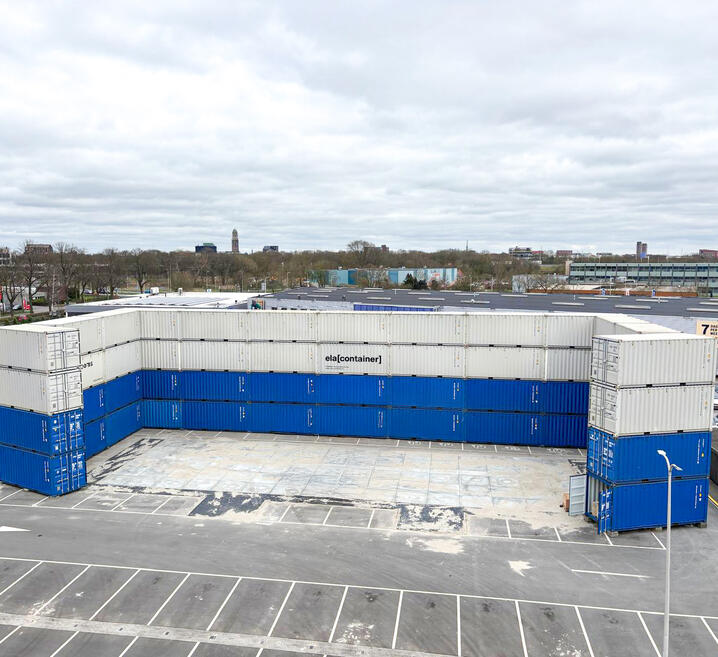Zeecontainers vormen een verhoogde basis voor het eigenlijke unitsysteem