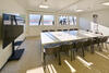 Tafels, stoelen, lockers en kasten, buitentrappen en een platform; decals op alle buitenwanden