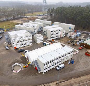 Kantoor op locatie, kantoor voor externe aannemers, kleedruimtes en accommodatie; waterstofproject in Lingen / bouw van een waterstofelektrolyser.