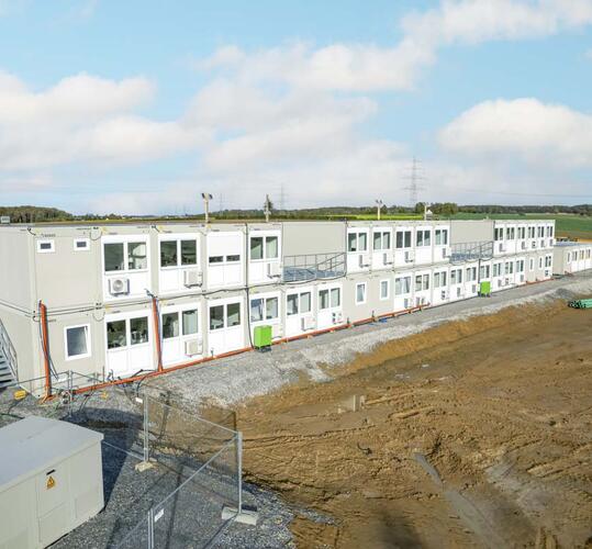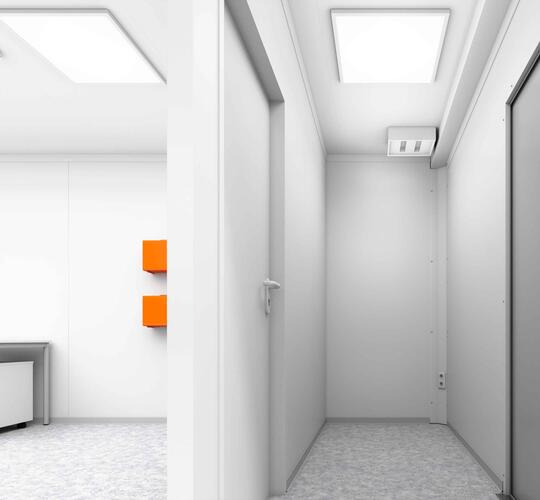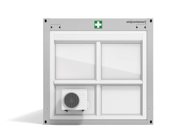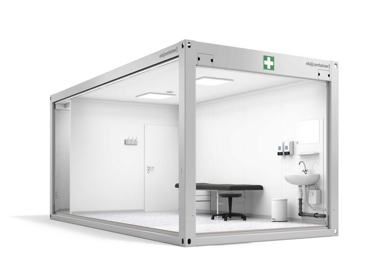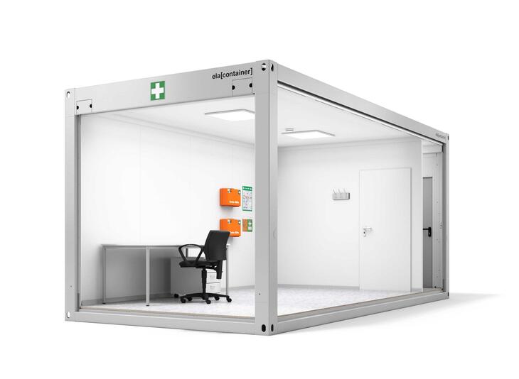 Verhuur van een tijdelijke eerstehulpunit met basisuitrusting.
